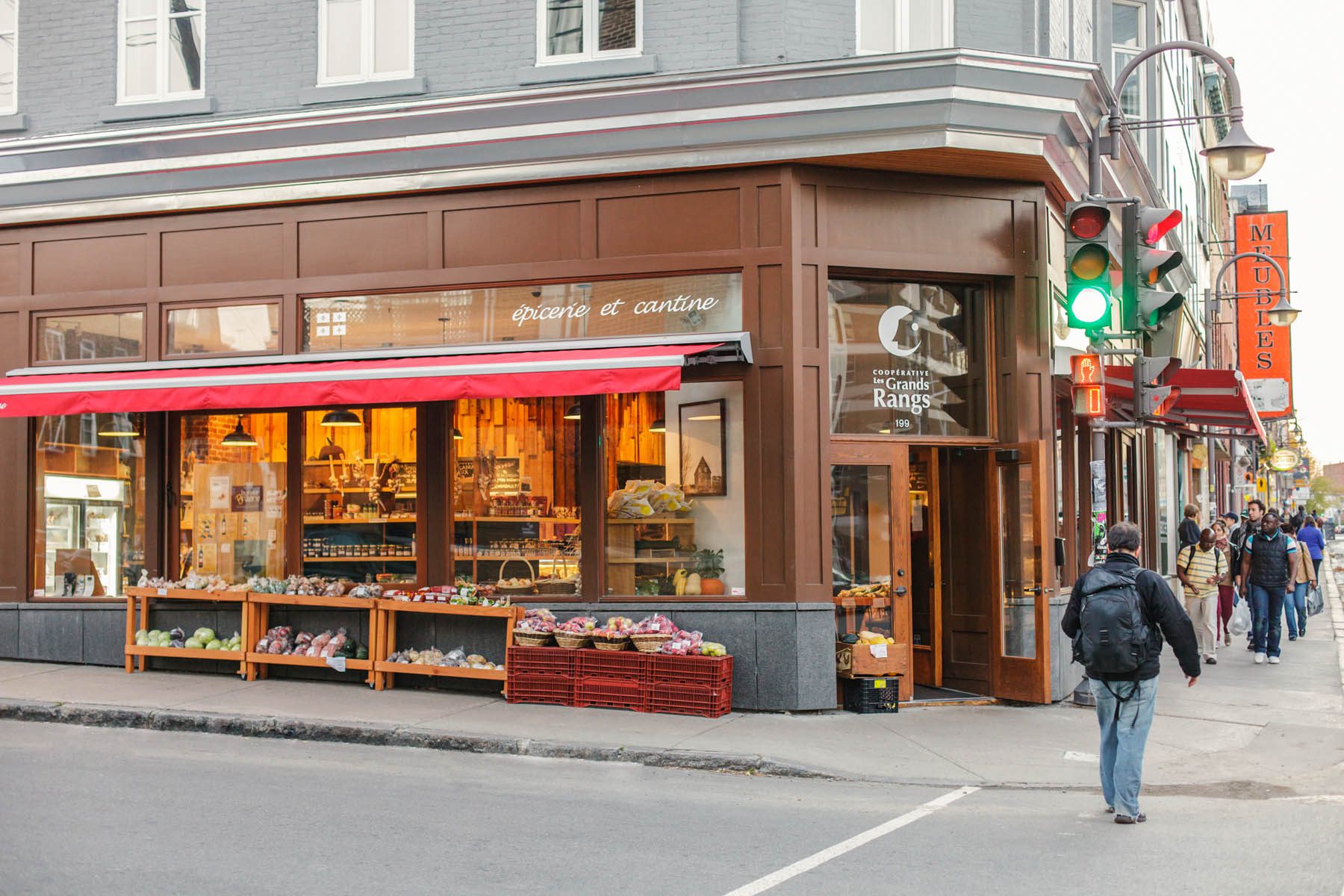 Le projet de la coopérative Les Grands Rangs (aujourd’hui connu comme la Fromagerie des Grondines) est situé au cœur du quartier Saint-Roch, à Québec, et se veut le point de rencontre entre ruralité et urbanité. Dès le départ, ce projet de rénovation a été conçu dans une optique de développement durable et de valorisation des ressources et des matériaux. Nous avons misé sur les différentes possibilités qu’offre le bois dans une optique d’aménagement commercial afin de créer une harmonie porteuse des valeurs véhiculées par notre client.