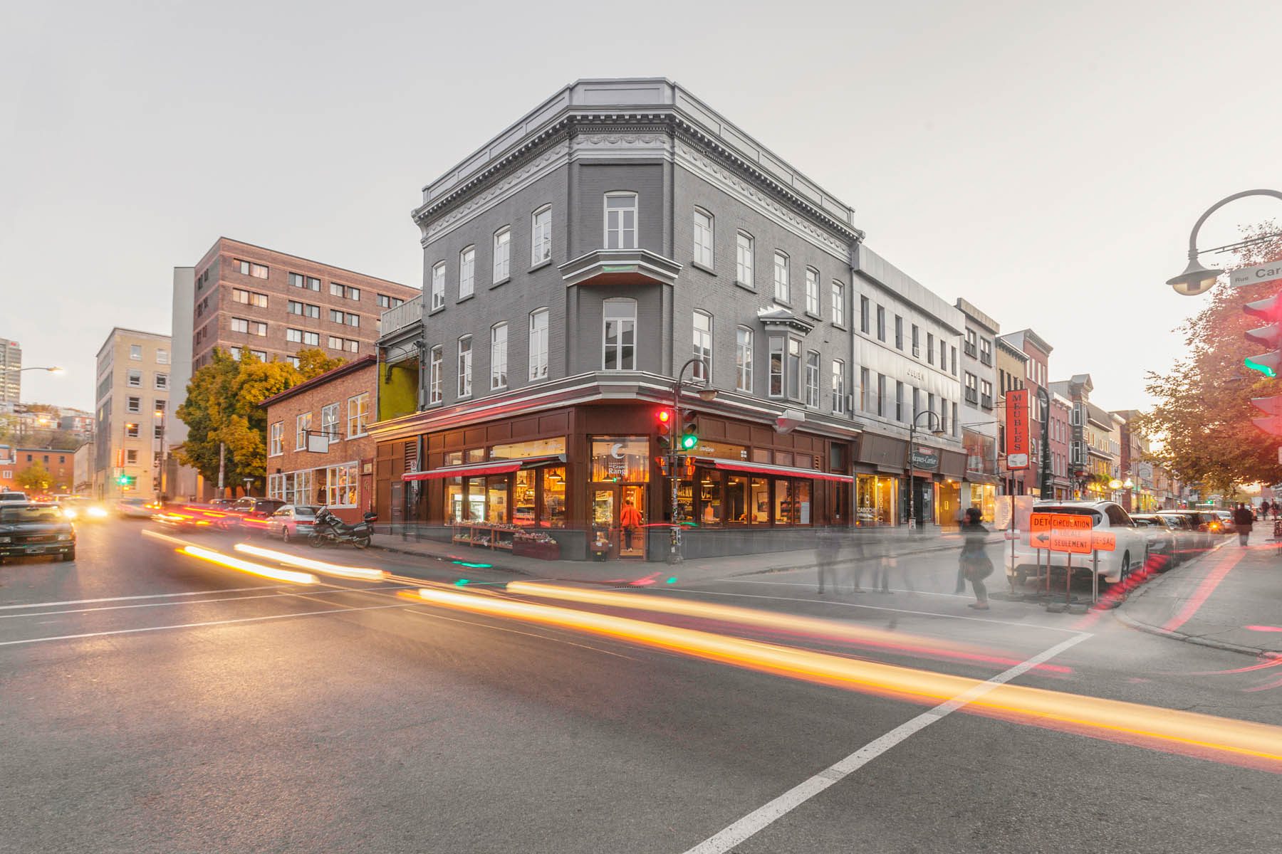 Le design de l’espace s’est grandement inspiré de cette rencontre entre citadins et maraîchers. L’usage du bois, par ses diverses essences et finis, a contribué à affirmer ces contrastes. Ainsi, les différentes activités de la Fromagerie gravitent autour d’un volume central, revêtu de planches de bois récupérées et présentant un appareillage vertical rappelant les granges typiques de nos paysages ruraux. L’effet à la fois brut et soigné permet un dialogue avec les espaces épicerie et cantine, de part et d’autre de ce volume, dont la matérialité est plus épurée. En ce sens, une seule essence de bois a été utilisée pour fabriquer tout le mobilier de ces espaces. L’ensemble crée une ambiance conviviale et intégrée, qui se marie avec les divers éléments existants du local qui ont été conservés et restaurés. Comme la Fromagerie profite d’une localisation en coin de rue, une attention particulière a été portée au revêtement extérieur ainsi qu’aux ouvertures. Le bois a aussi été privilégié pour ces deux éléments afin de se démarquer du standard de la construction commerciale et de favoriser une construction responsable, économique et durable.