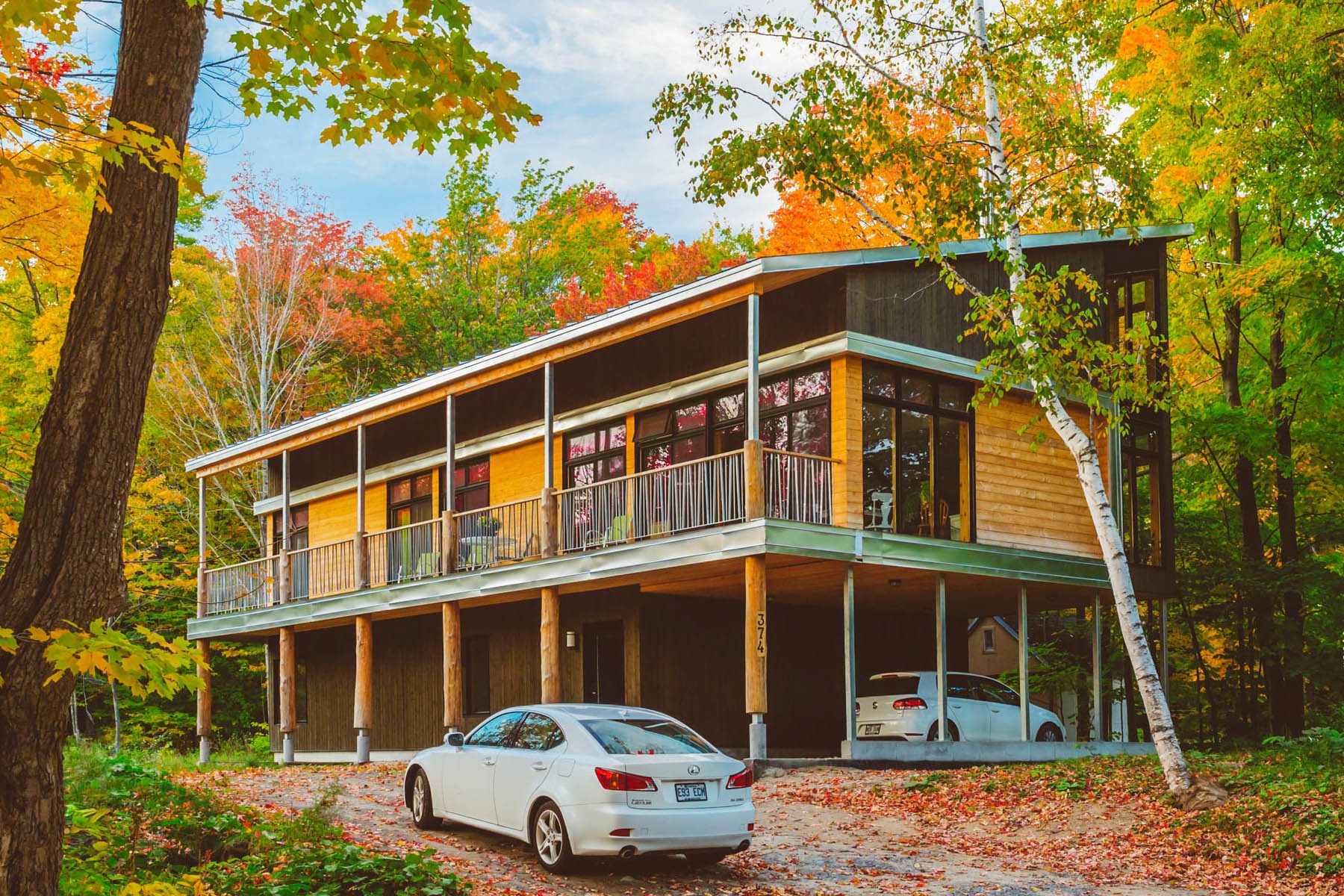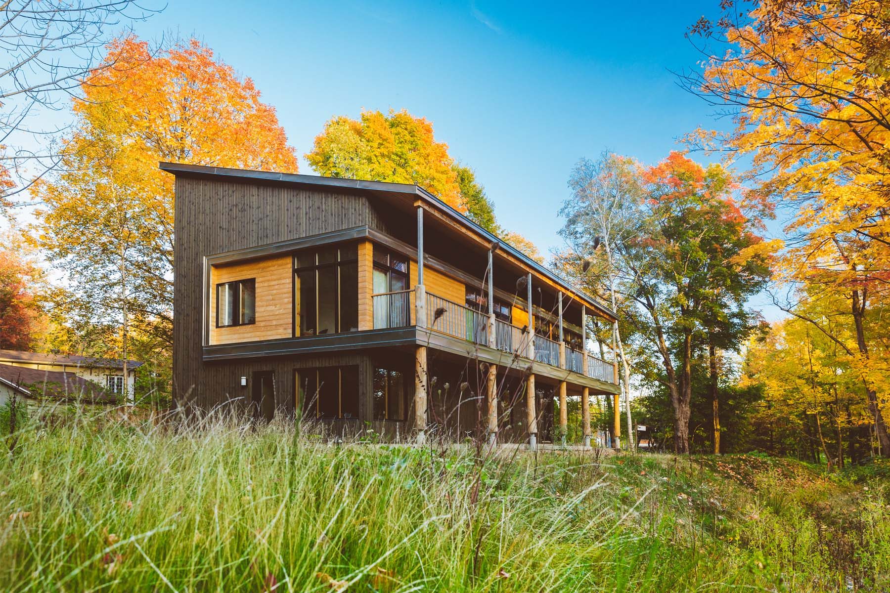 TERGOS a réalisé la construction de cette résidence conçue pour et par une architecte. En choisissant notre équipe, capable de concrétiser jusqu’au dernier détail son projet familial où cohabitent sa résidence principale et son atelier, elle a fait preuve d’une grande confiance. Cette réalisation rejoint les valeurs de TERGOS par son approche bioclimatique. La maison est orientée pour favoriser un apport maximal de gain solaire, tout en le contrôlant avec de généreux débords de toit en plus de la coursive. La verticalité de la nature est réinterprétée dans l’architecture par les colonnes. En effet, de grands troncs d’arbres agissent comme éléments porteurs de l’extérieur à l’intérieur du projet, ajoutant ainsi à la complexité de réalisation. De hauts standards de qualité étaient exigés tant pour les systèmes structuraux et mécaniques que pour les détails de finition extérieurs et intérieurs.
